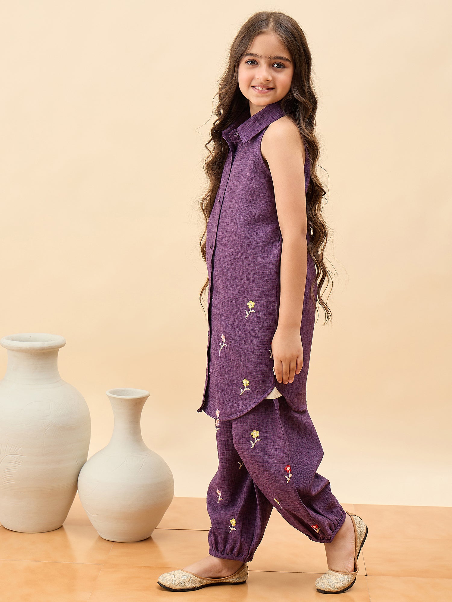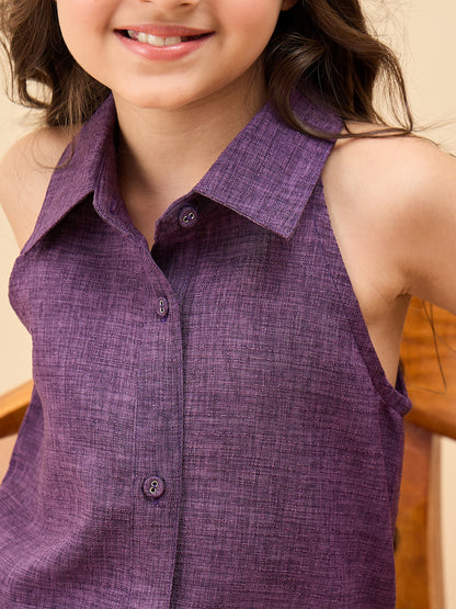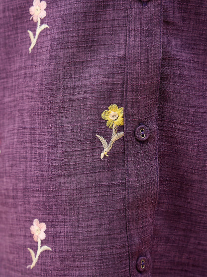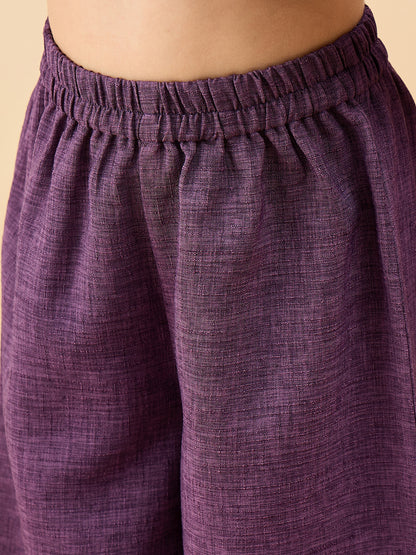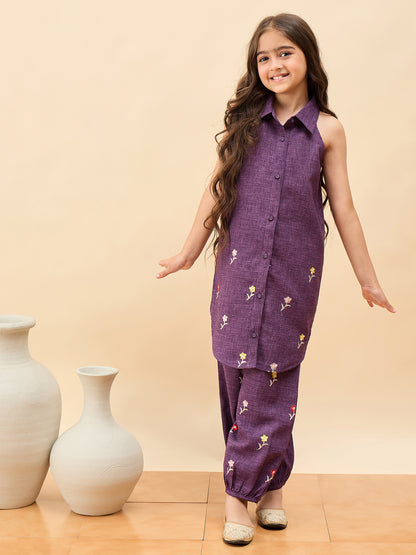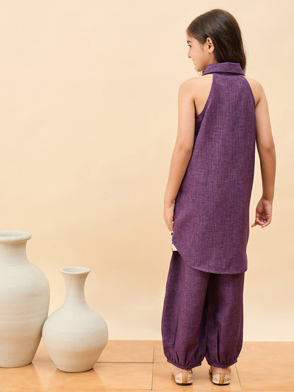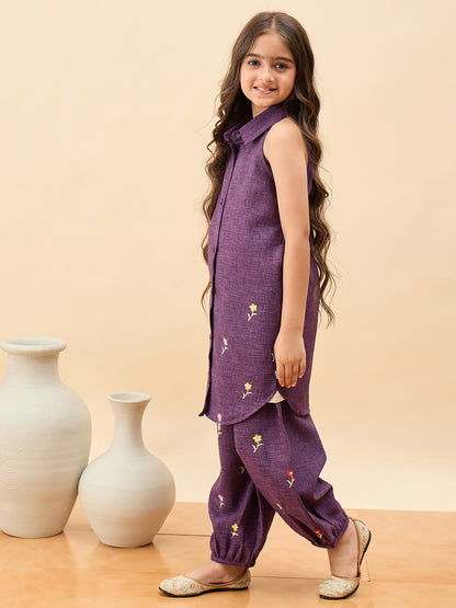 - StyloBug Girls Above Knee Embroidery Kurti Set - Purple