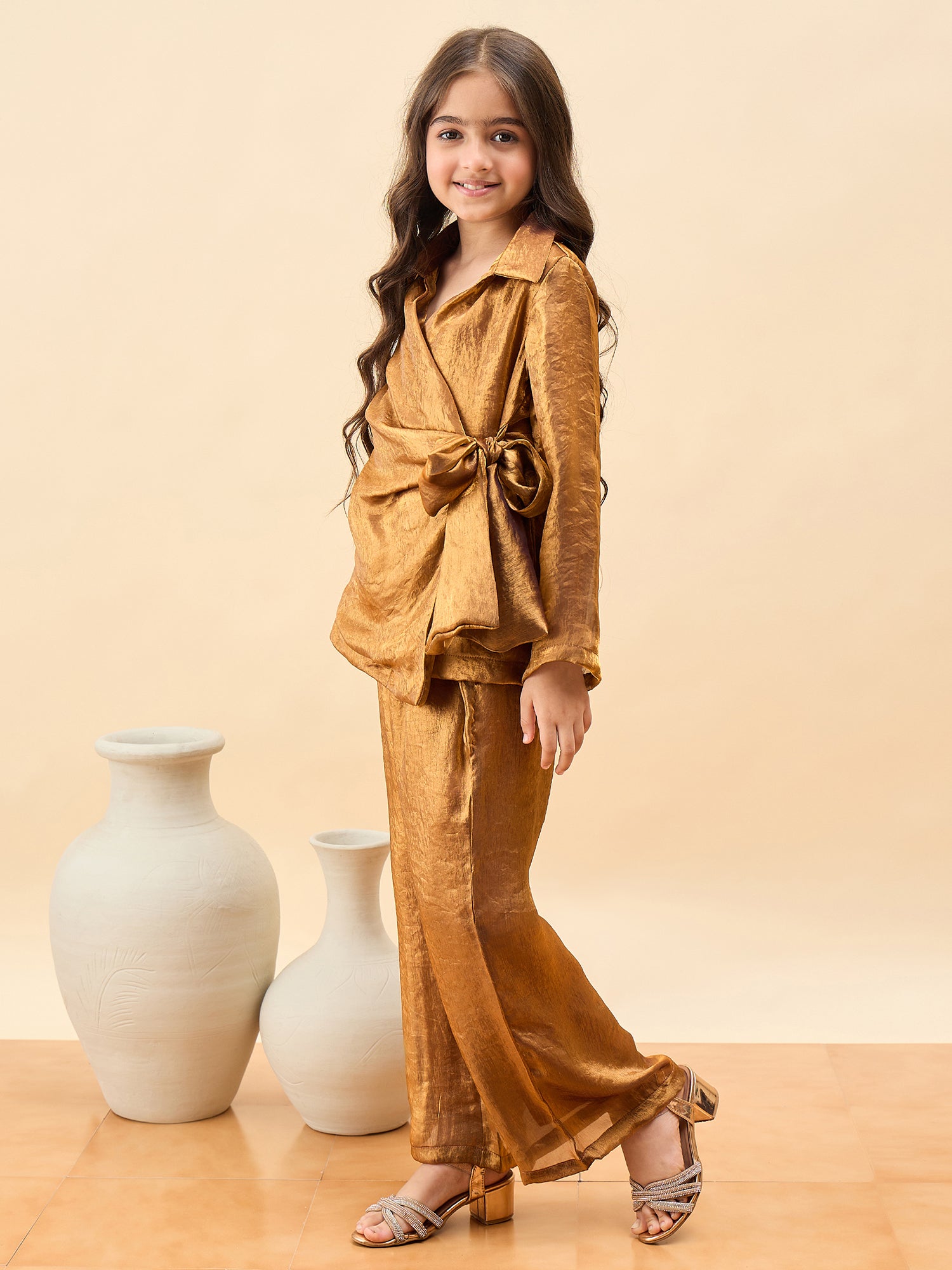 - StyloBug Girls Hip Length Solid Top With Pants - Brown
